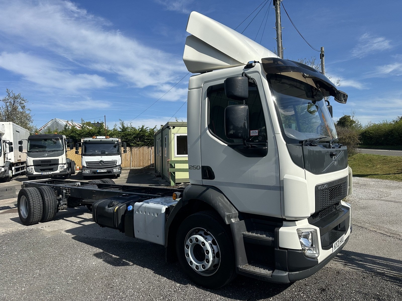 2021 (21) Volvo FL250 Euro 6 automatic, 18,000kg, 5.9m wheelbase chassis. This is a day cab chassis with rear air suspension, suitable for accommodating a 26ft body. It features the newer-style interior, air conditioning, and excellent tyres all round. The vehicle is in very clean condition, has been Volvo contract maintained, is in full working order, and is ready to take a body. It has covered 224,000 km from new. CHOICE OF 2!