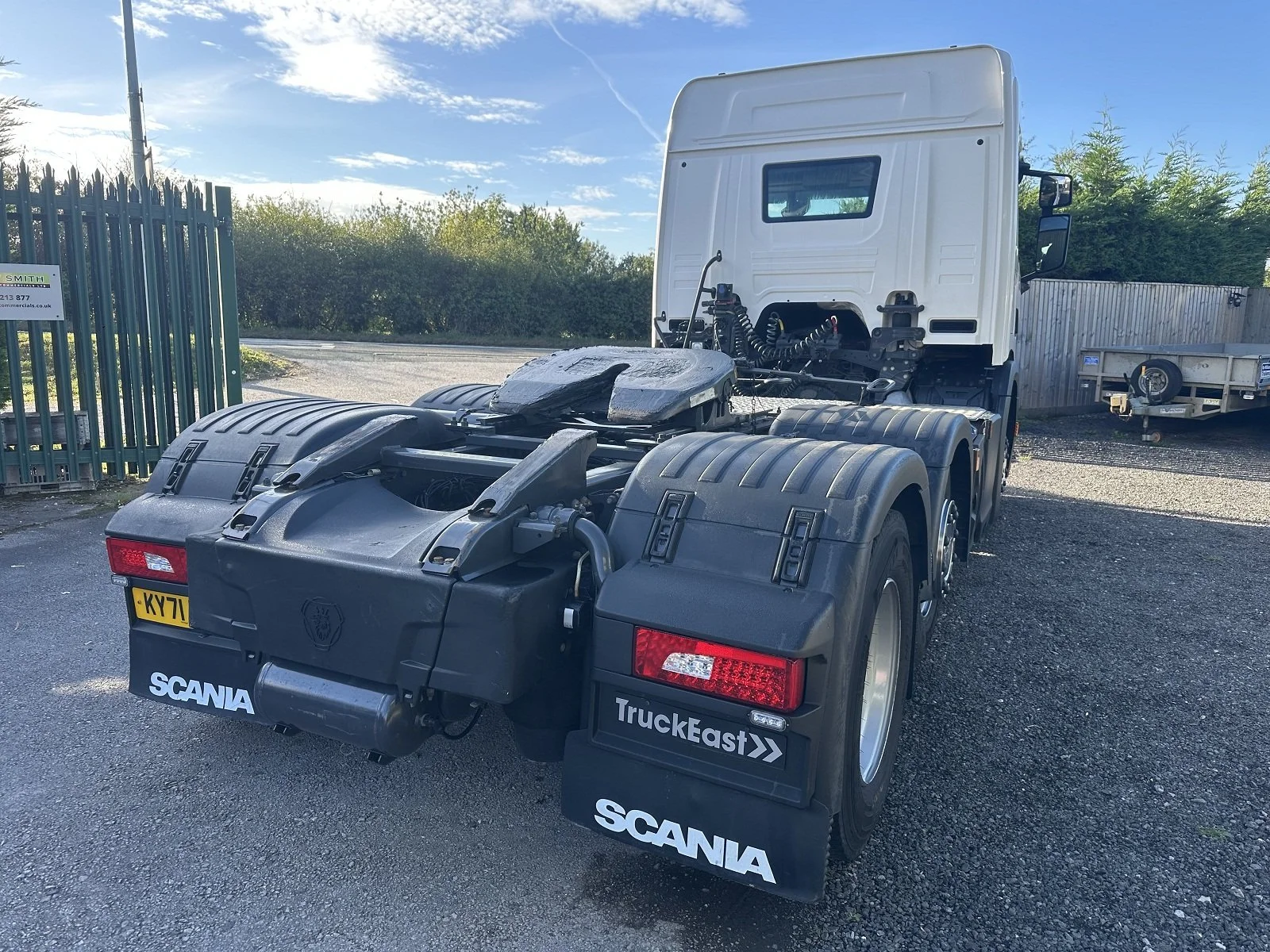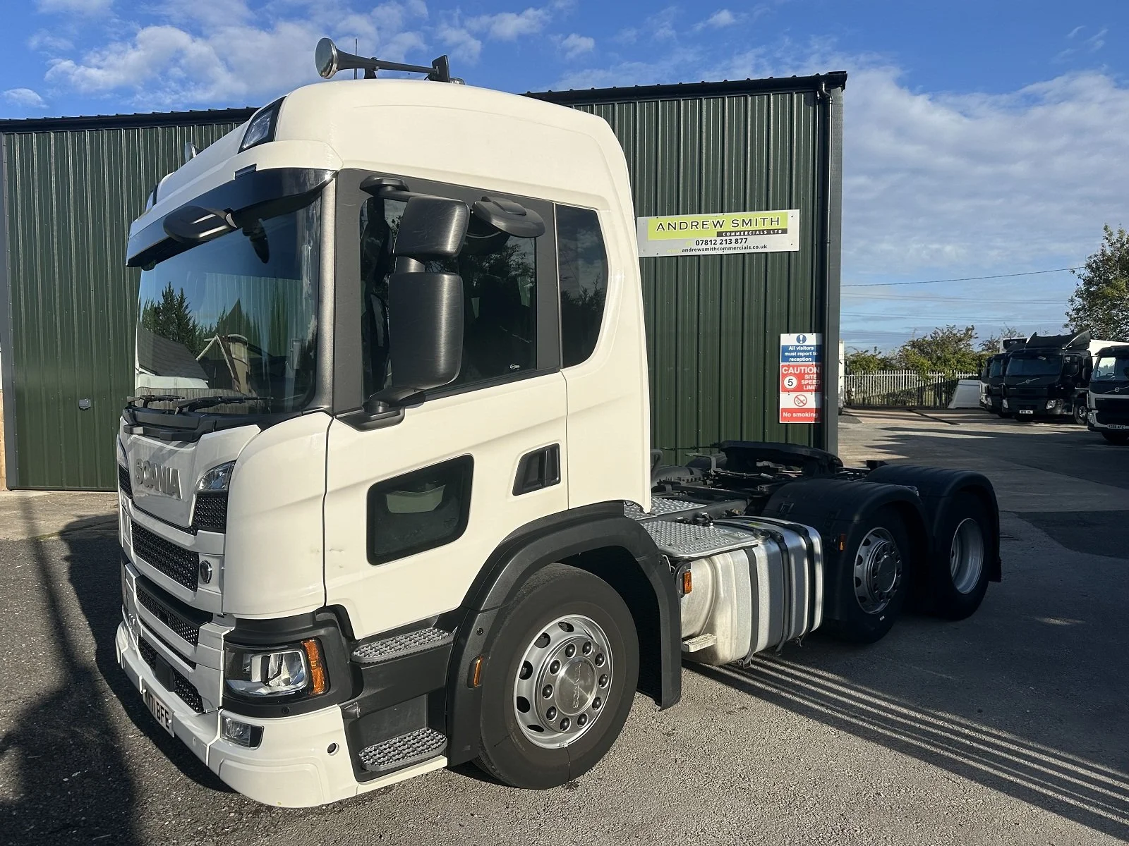 2022 (71) Scania P500 (13 litre) Comfort cab 6x2 Tractor unit. Automatic Gearbox, Super Low mileage at just 153,000Km’s From new With Full Scania dealer History. Fantastic all round condition, Amber LED roof bar, Amber front grille Lamps, Air Horns, Good Tyres and Under Bunk Fridge. Super Clean!