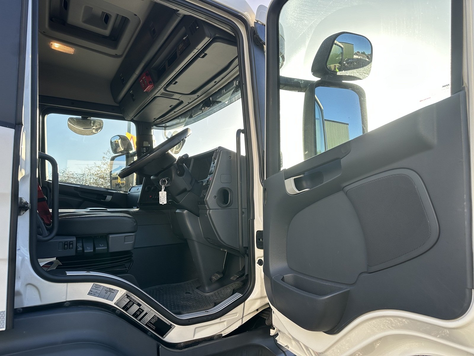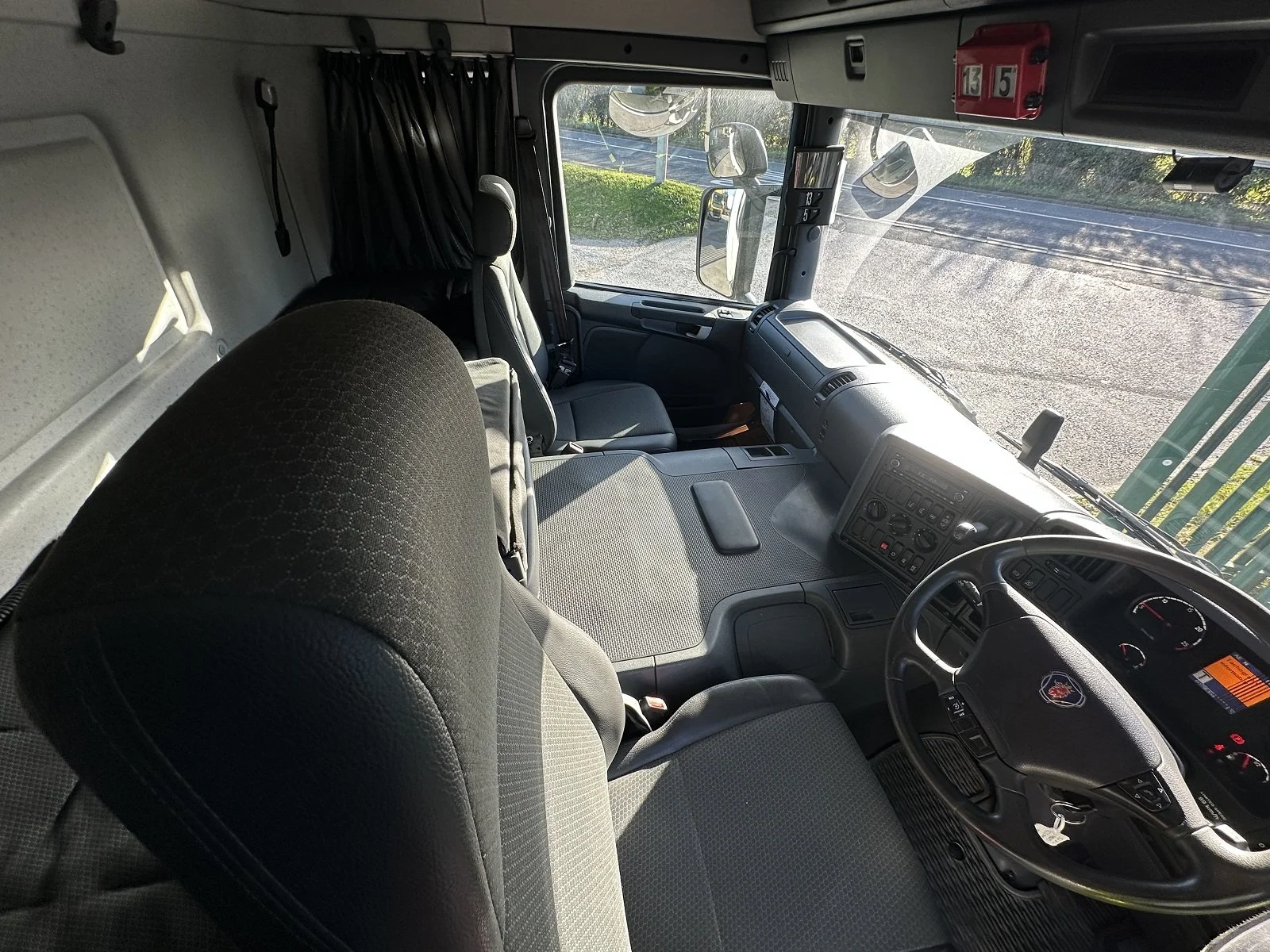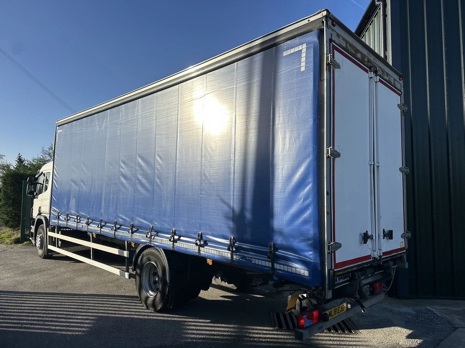 2018 (18)) Scania P250 Euro 6, 2 Pedal Auto 18 Tonne Sleeper Cab Chassis on rear air suspension. Complete with 27ft 7In x 8ft 7in (Through side) curtain body. Barn doors to the rear along with a 1.5T tuckaway Tail lift. Only 411,000Km’s, Great all round condition,