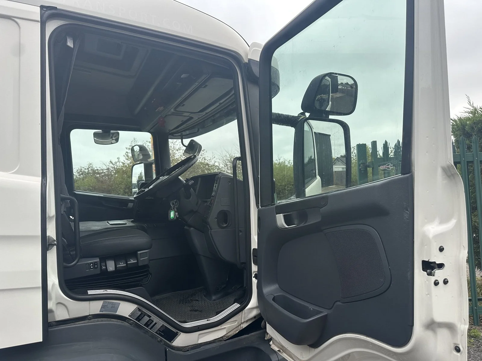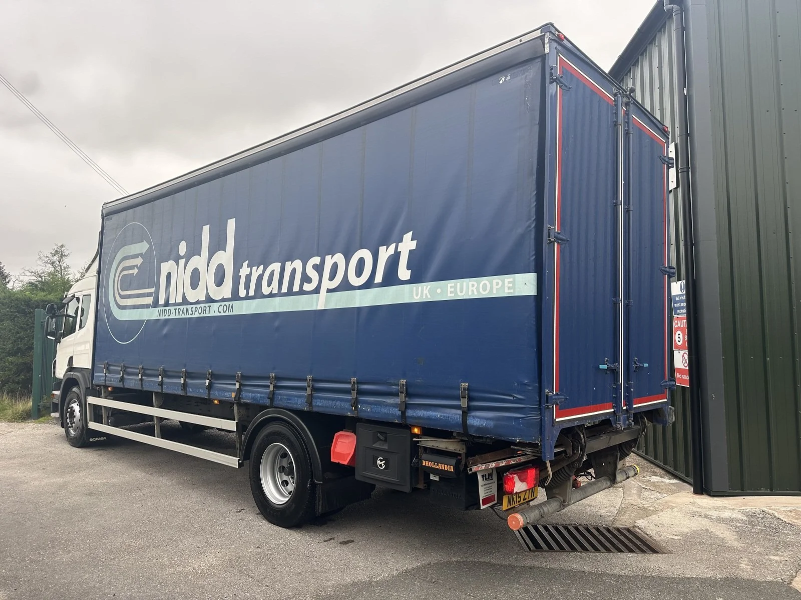 2015 (15) Scania P250 Euro 6, 2 Pedal Auto 18 Tonne Sleeper Cab Chassis on rear air suspension. Complete with 25ft 2in x 8ft 2in (Through side) curtain body. Fresh Barn doors to the rear along with a 1.5T tuckaway Tail lift. Only 370,000Km’s, Great all round condition,and accompanied by its service history.