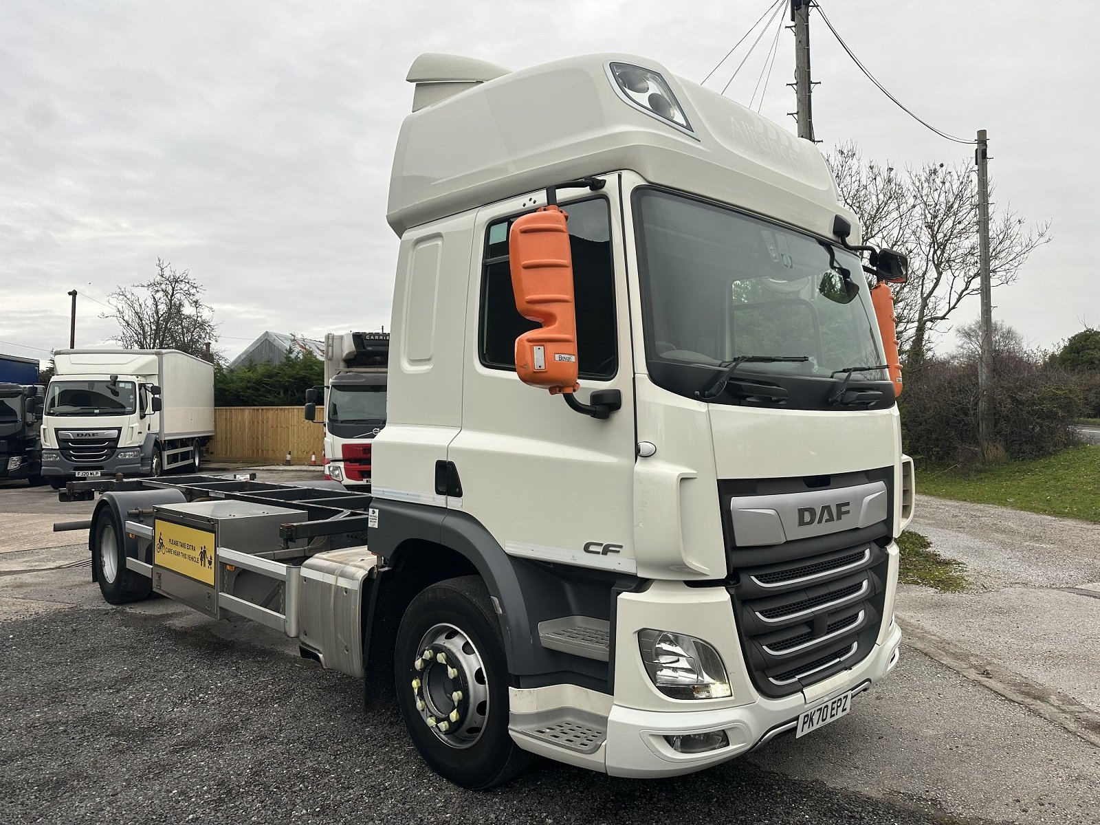 2020 (70) DAF CF 370BHP (11 Litre) Automatic Space Cab 5.7 Metre Wheelbase Chassis on Full (front and rear) height adjustable Air suspension. Fantastic spec with Air Seats arm rests air con and so much more. Also equipped with an Abel Demount system to accommodate a 24ft body and A VBG Air coupling to the rear. Mileage 431,000Km’s and in superb condition. Choice of 2!!